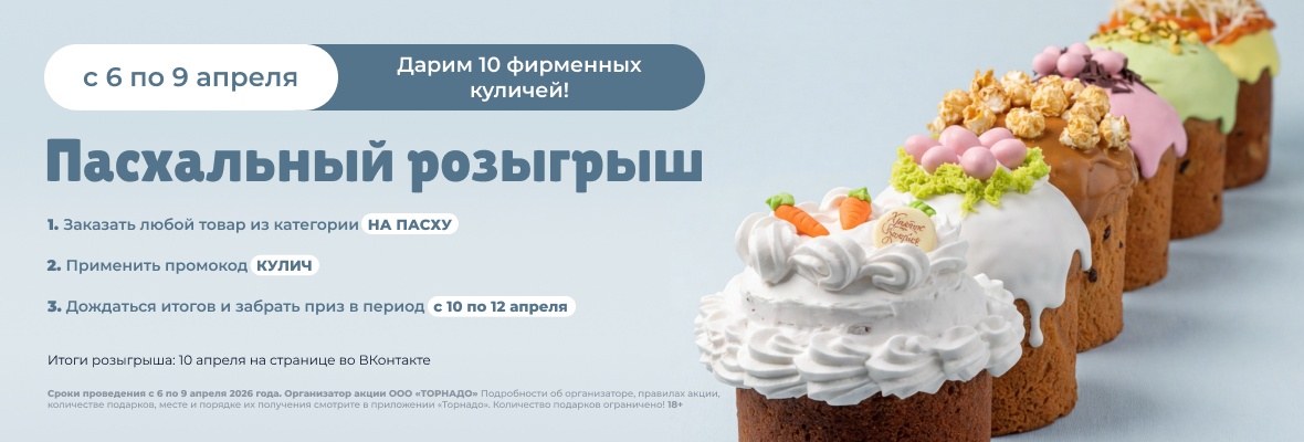 Интернет-магазин Торнадо – это онлайн витрина с огромным ассортиментом продуктов с доставкой из местных супермаркетов. Не тратьте время на поход в магазины, сделайте заказ продуктов на дом прямо сейчас.