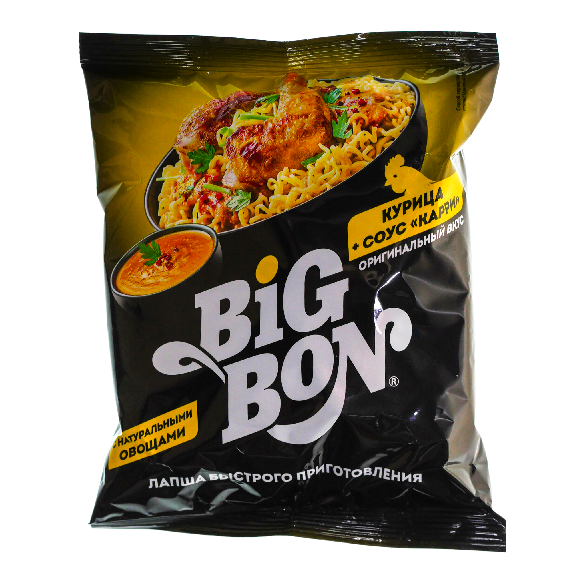 Лапша быстрого приготовления Big Bon «Курица и соус карри» (75 г) — макаронное изделие с добавлением кусочков курицы, сушёных овощей и насыщенного, пряного сладко-кислого соуса карри.