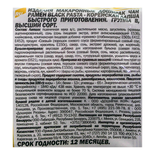 Лапша быстрого приготовления «Чан Рамен Black Pasta» марки «Доширак» — это идеальный вариант для тех, кто хочет сытно перекусить, не отрываясь от рабочего процесса. Оцените ставший классическим вкус лапши под совершенно новым корейским соусом, приготовленным на основе соевых бобов. Просто залейте содержимое упаковки кипятком, накройте крышкой и уже через несколько минут вы можете насладиться его насыщенным вкусом.