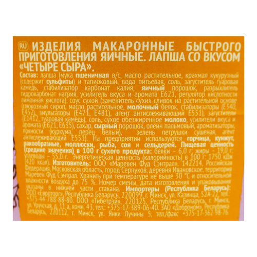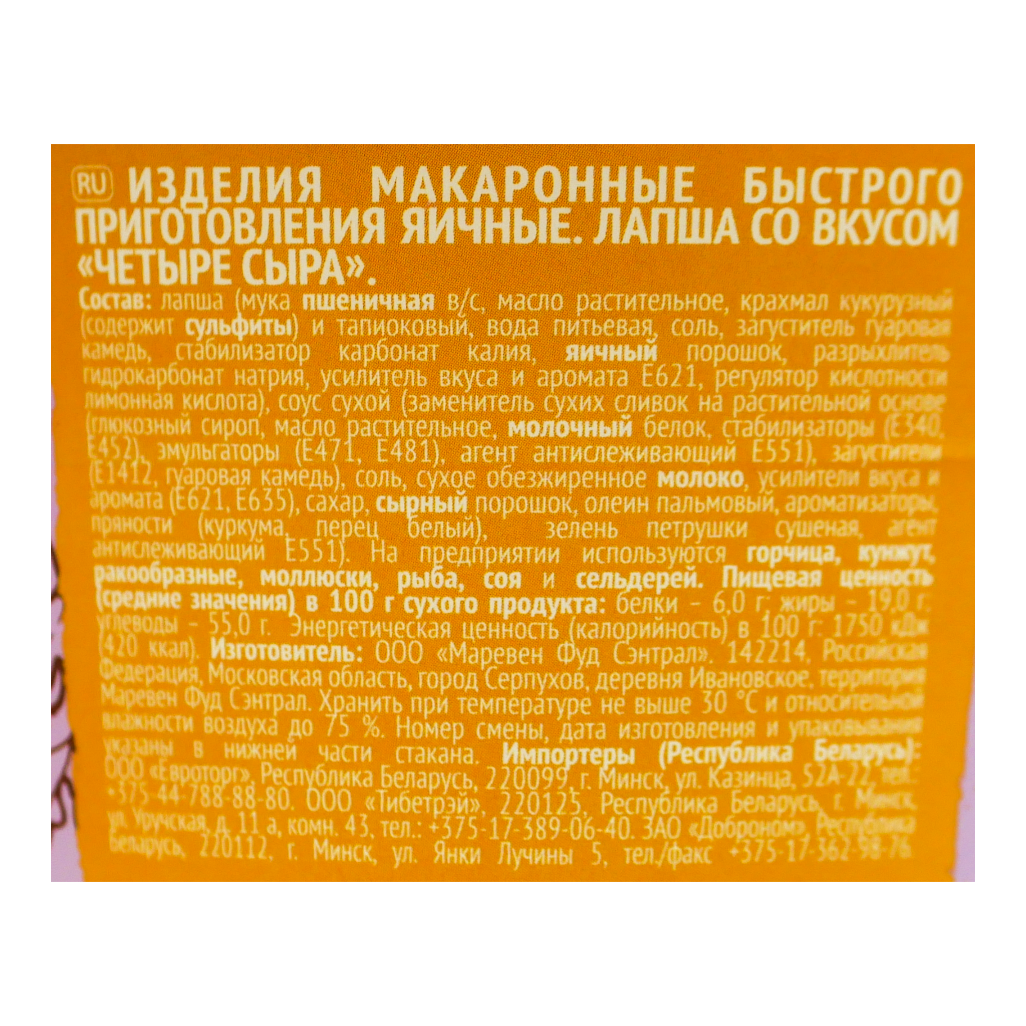 Лапша быстрого приготовления "Роллтон" со вкусом четыре сыра (70г стакан)