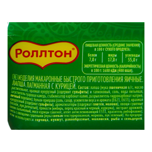 Лапша б/п Роллтон 90г лагман/курица лоток