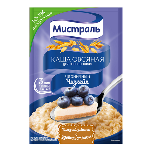 Яркий и продуктивный день начинается с вкусного и полезного завтрака.Поэтому бренд-шеф Мистраль предлагает Вам аппетитную кашу-десерт в ритме города соблазнов Нью-Йорка - "Чизкейк". Нежный кремово-сливочный вкус в сочетании с черникой идеально дополнят чашечку терпкого свежезаваренного кофе и настроят а приятные приключения. А цельные полезные овсяные хлопья подарят энергию и чувство сытости надолго.
