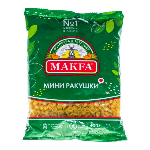 «Мини ракушки» от Makfa — макаронные изделия в виде аккуратных ракушек.