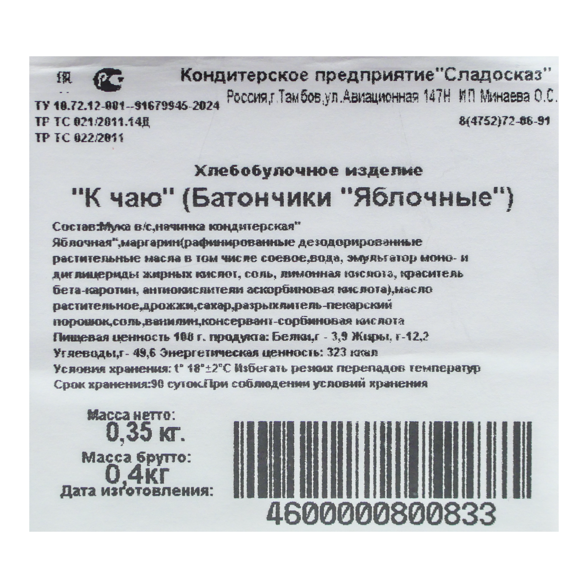 Печенье Батончик к чаю 350г яблоко Сладушка
