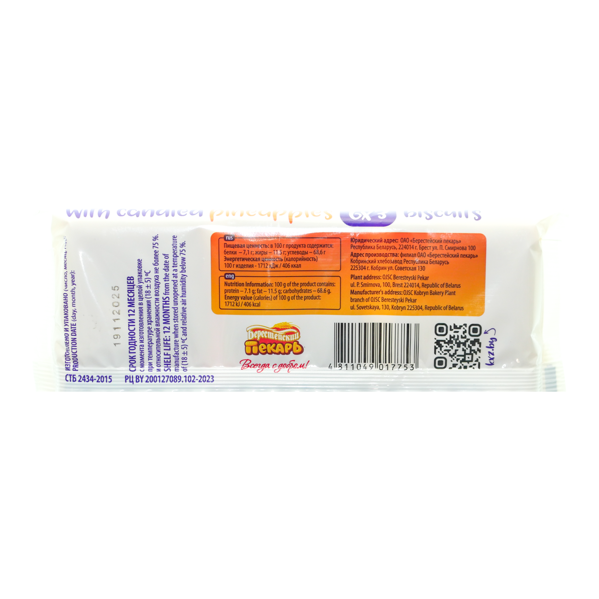 Печенье Лепио 220г цукаты/ананас Берестейский пекарь