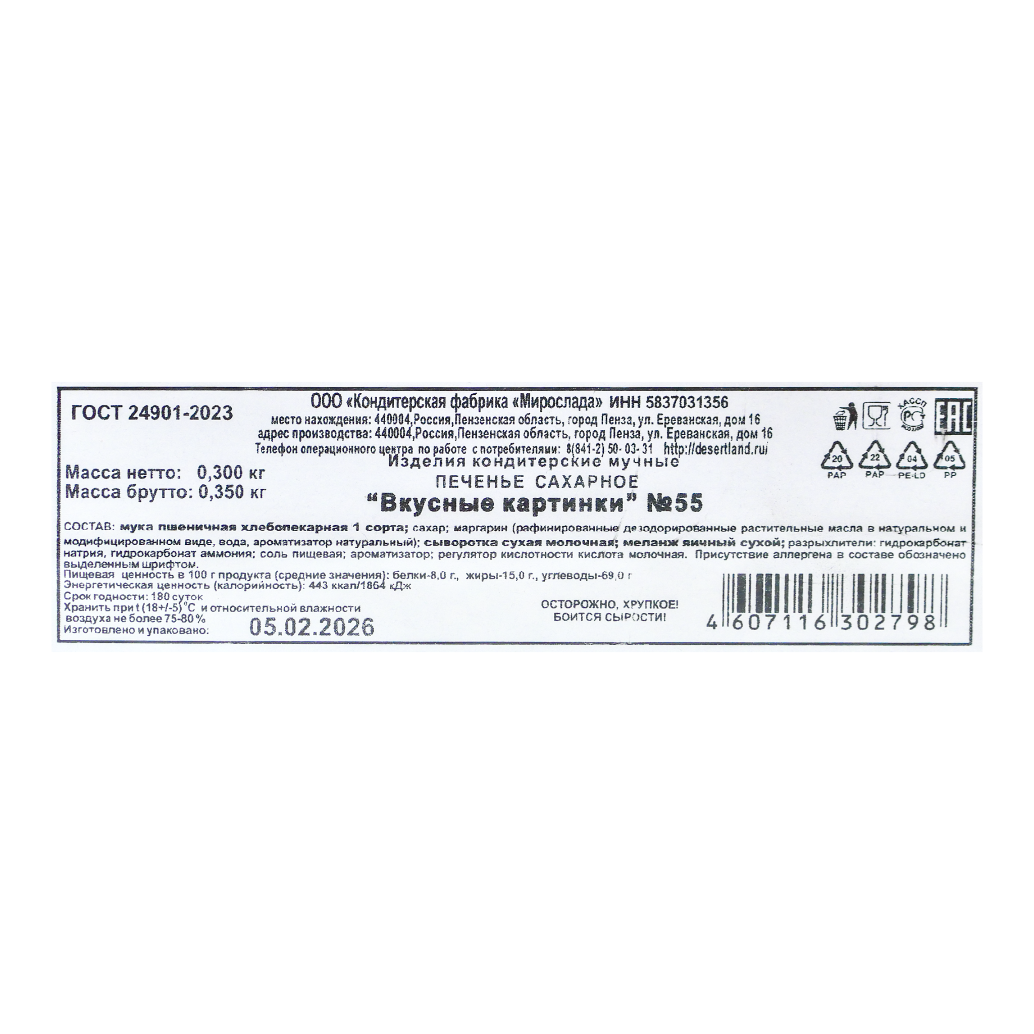 Печенье Вкусные картинки №55 300г постное Мирослада