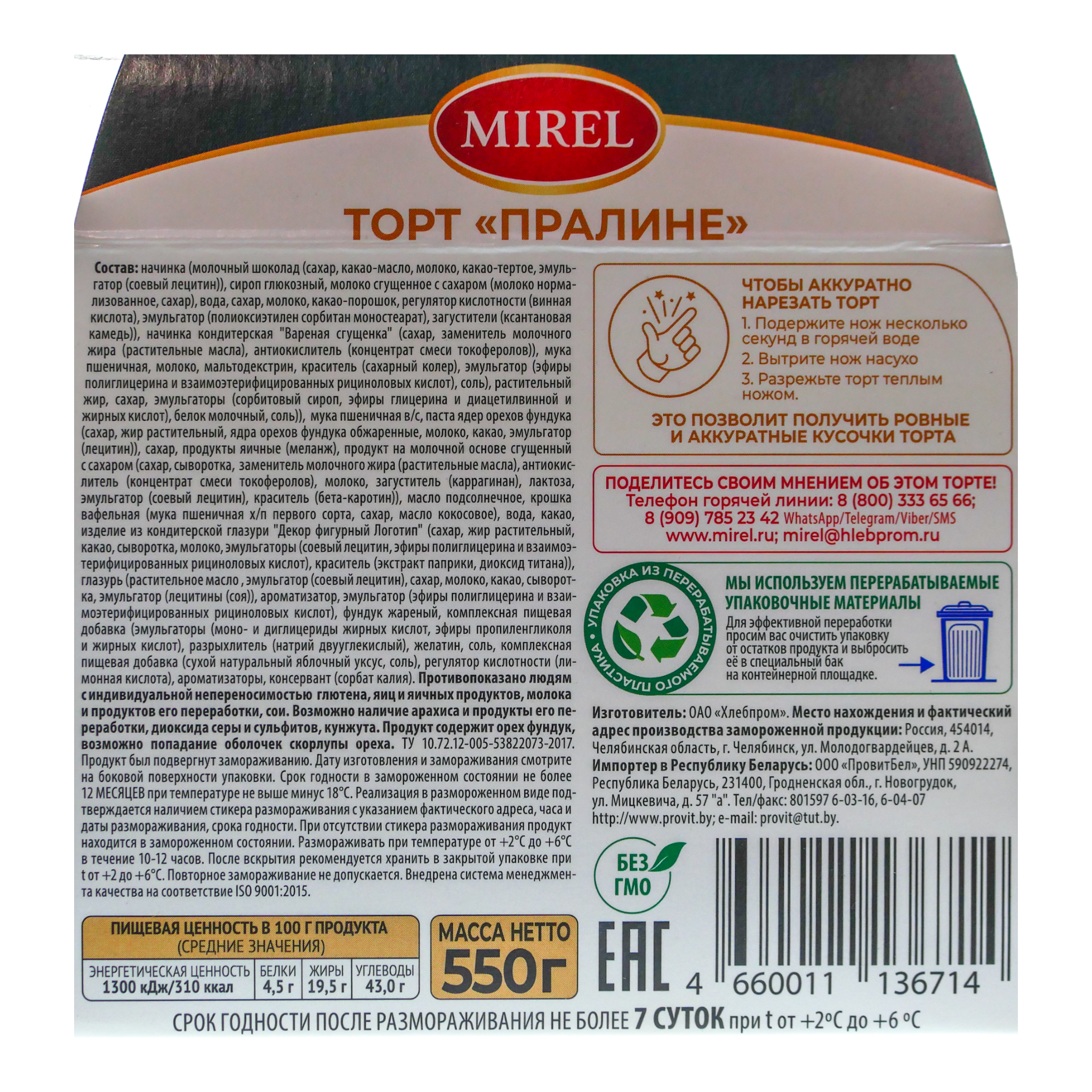 Торт Мирель Пралине 550г Хлебпром