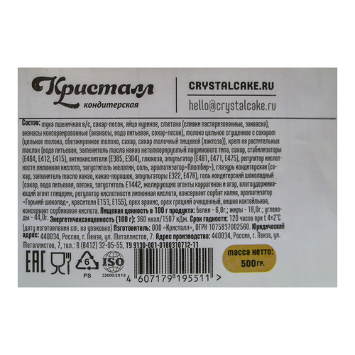 Торт Сметанный 500г Кристалл