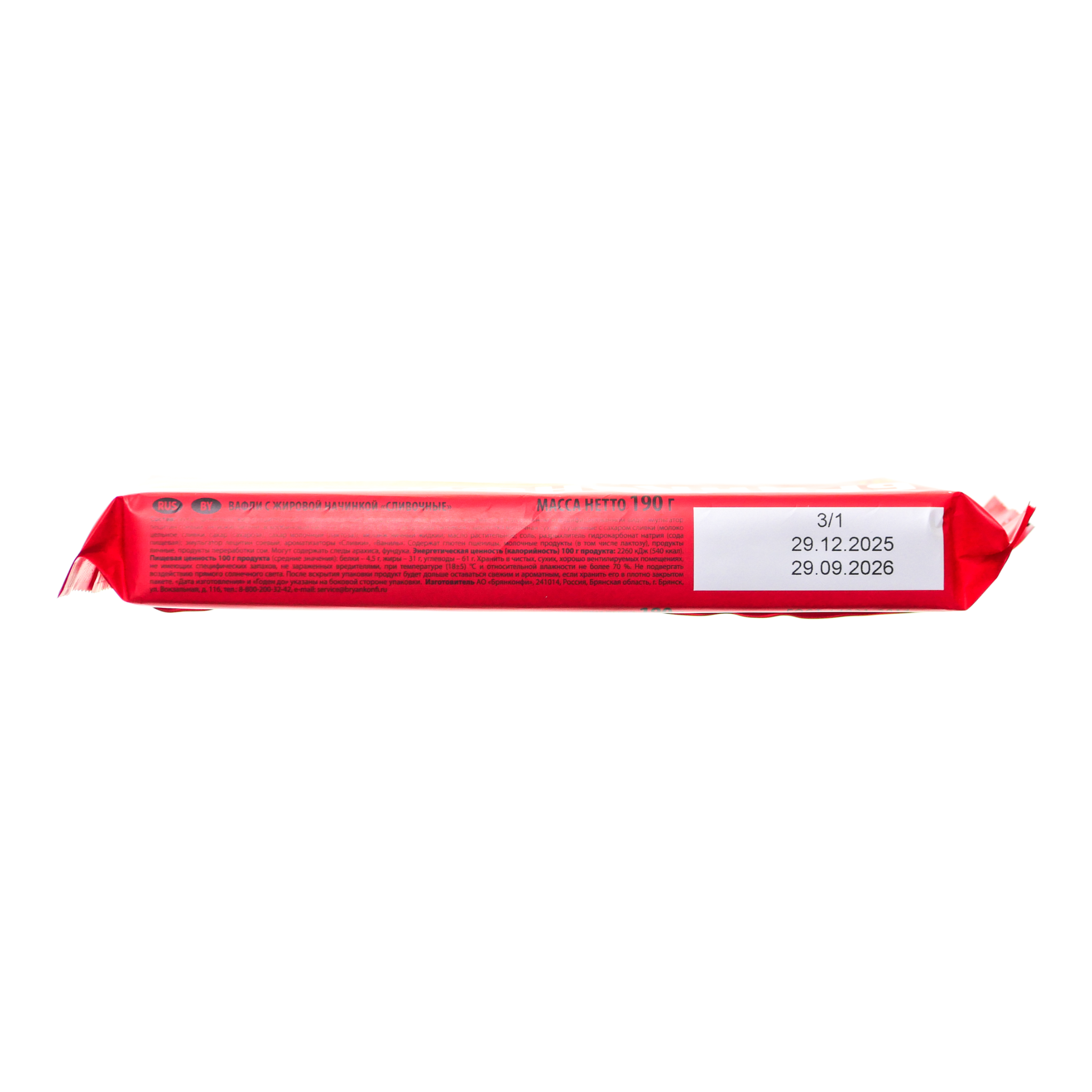 Вафли Сливочные 190г Брянконфи