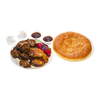 Состав: Шашлык из свиной шеи жареный на мангале - 1 кг, картофель жареный на мангале - 0,3 кг, лук маринованный - 0,1 кг, овощи гриль на мангале- 0,3 кг, соус чесночный 80г, соус томатный 80г, лепешка тандырная подовая 290г - 1шт