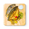 Состав: Сибас жареный на мангале — 0,16 кг Дорадо жареная на мангале — 0,3 кг Соус Цезарь 40г - 2 шт Овощи гриль на мангале - 0,3 кг Лепешка тандырная подовая 290г  -  1шт