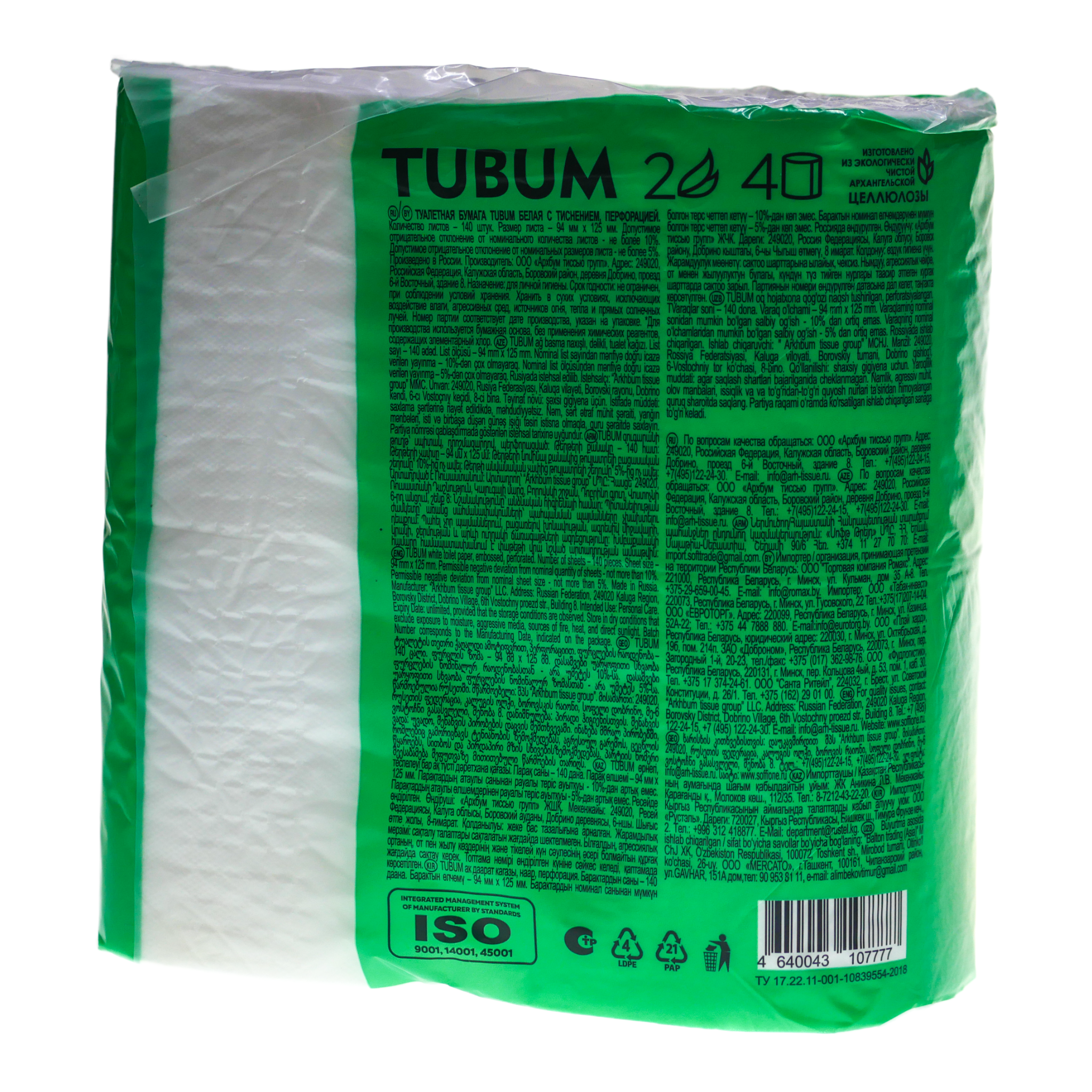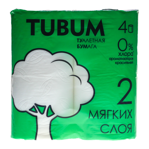 Туалетная бумага Tubum 2-слойная белая, упаковка 4 штуки — изделие для личной гигиены. Туалетная бумага TUBUM создана для удобства и комфорта в повседневной жизни. Мягкое тиснение в сочетании с прочностью обеспечивает нежную заботу и ощущение свежести.