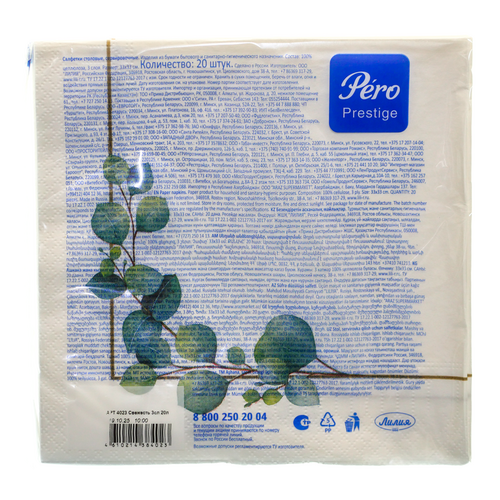Салфетки бум Перо Престиж 33*33см 3сл свежесть
