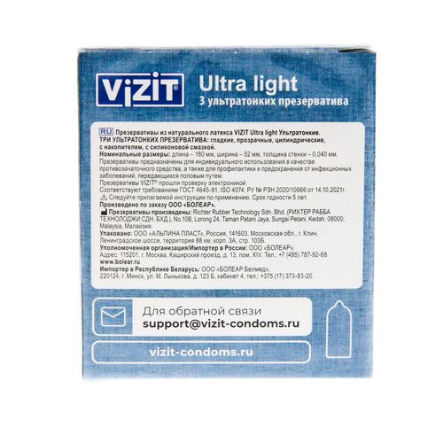 Презервативы VIZIT Ultra light Ультратонкие 3шт