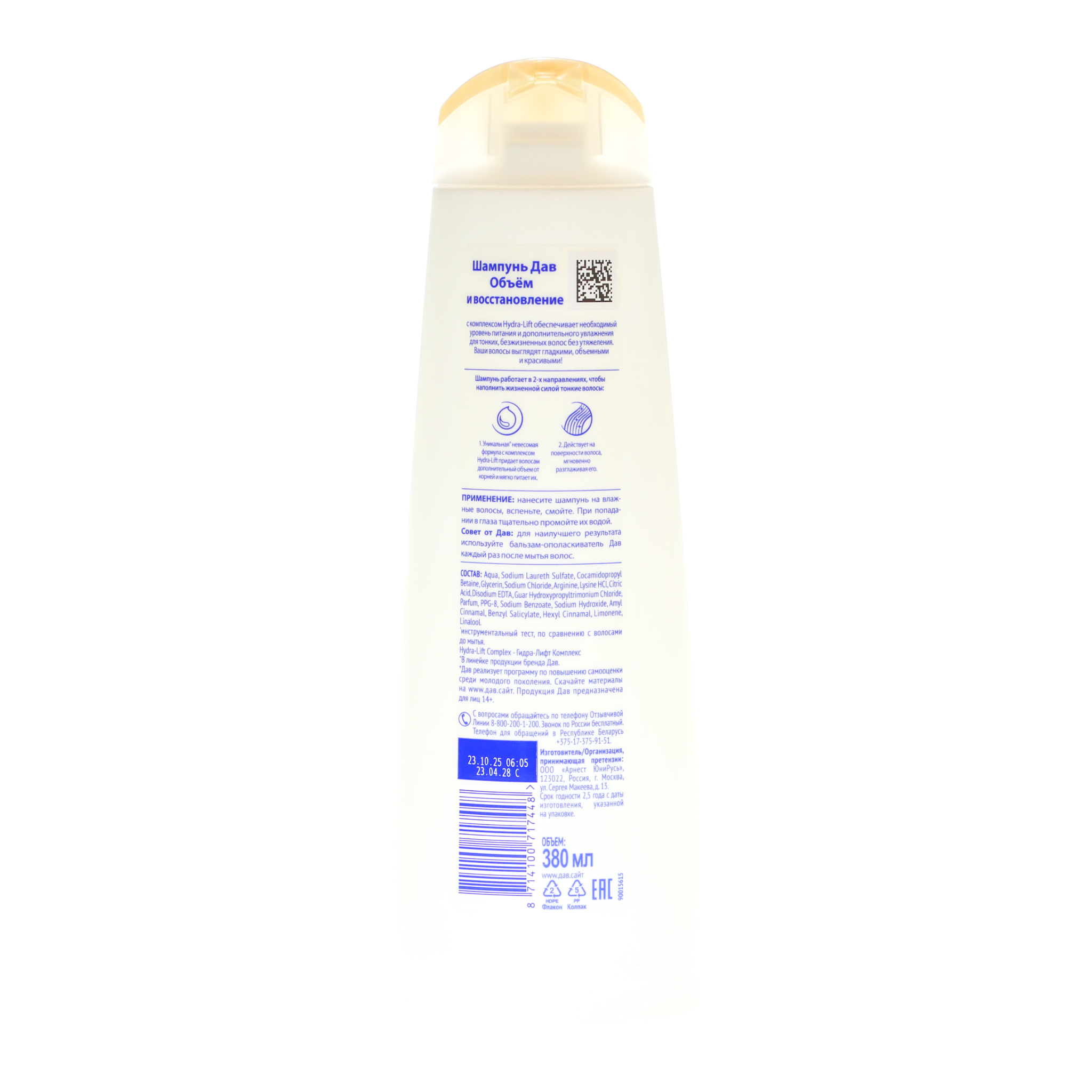 Шампунь Дав 380мл объем и восстановление для тонких волос
