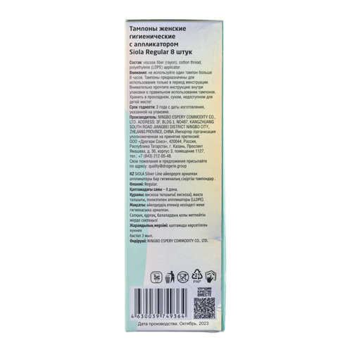 Тампоны Сиола сильвер 8шт регуляр с аппликатором