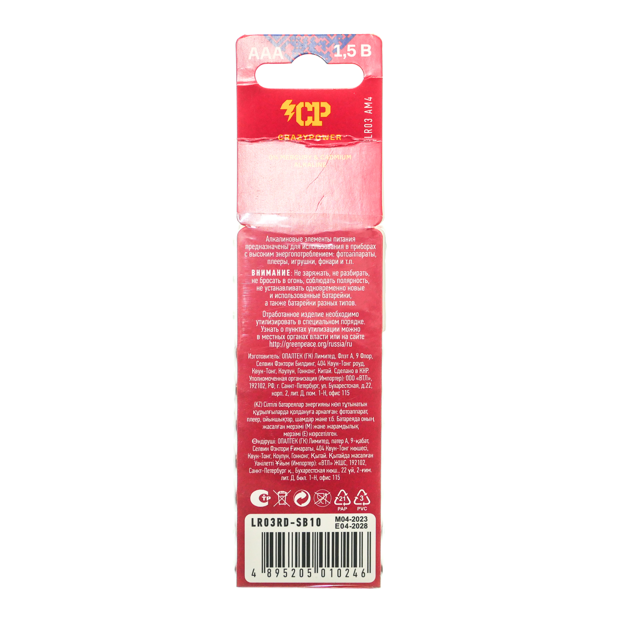 Батарейки алкалиновые ААА LR03 10шт Крейзи Повер 5010246