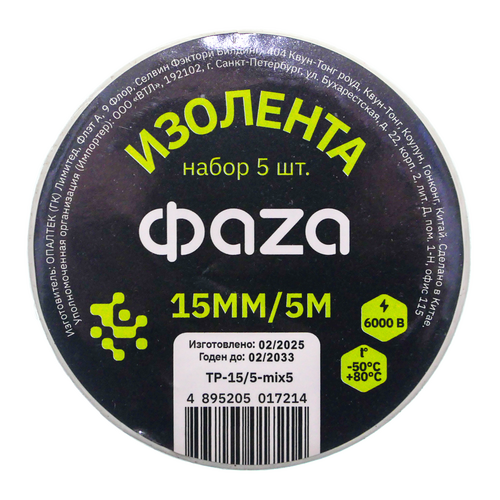 Комплект изоленты Фаза 15мм*5м 5рол/5цв 5017214