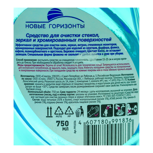 Чист ср д/стекол/зеркал/хром Новые горизонты 500мл+50% в под