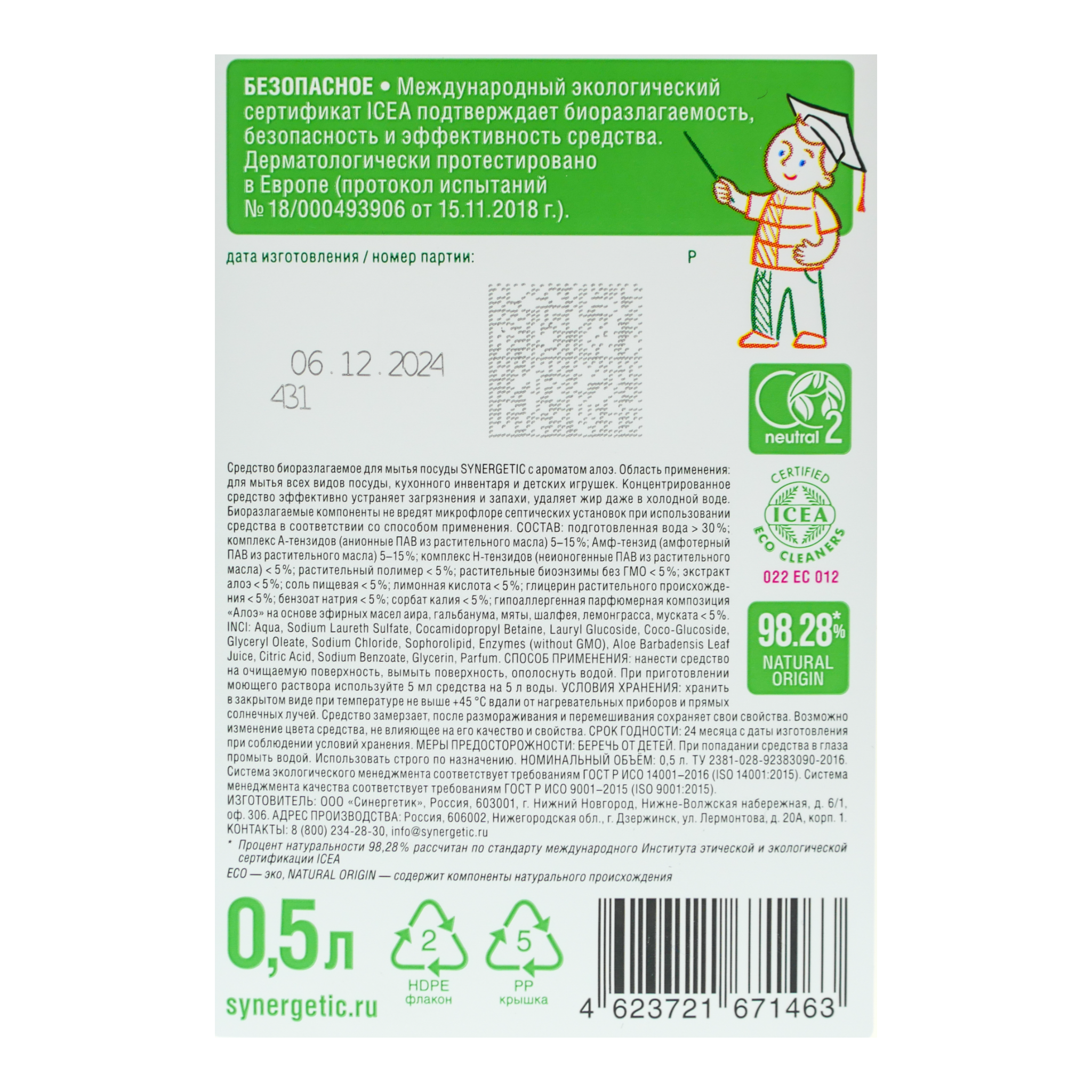 Гель д/мытья посуды Синерджетик 0,5л алоэ биоразлагаемый
