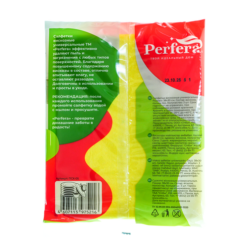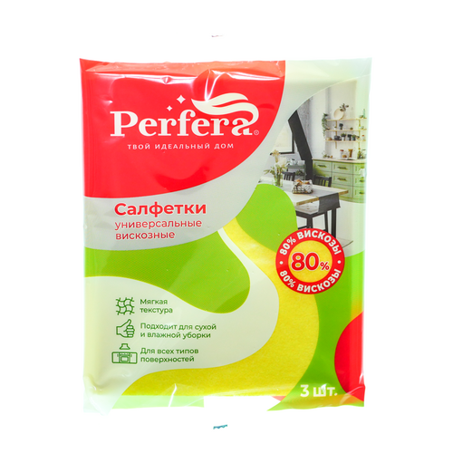 Салфетки вискозные универсальные Perfera, размер 38×30 см, упаковка из 3 штук.