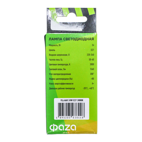 Лампа светодиодная Фаза FLL-A60 24w E27 3000K 230/50 5038448