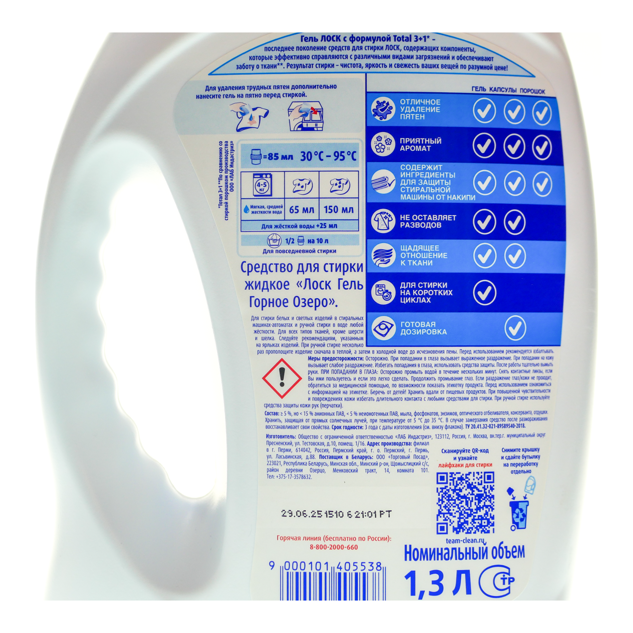 Гель для стирки Лоск 1,3л для белого белья горное озеро