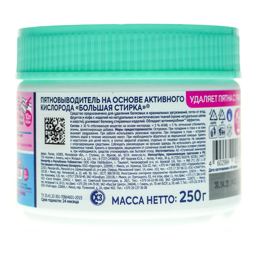Пятновыводитель Большая стирка 250г актив/кислорода банка