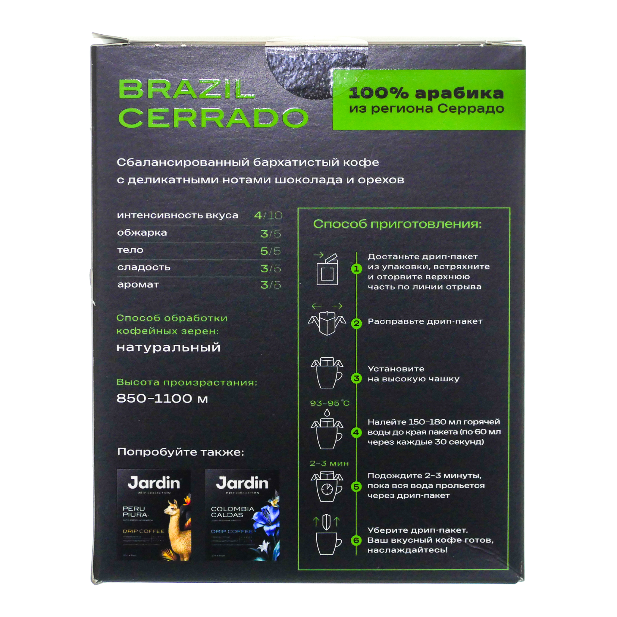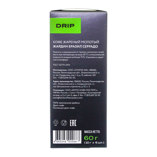 Кофе Жардин Бразил Серрадо 6пак 60г молотый дрип пак