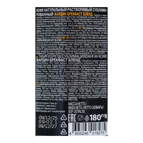Кофе Жардин 180г брекфаст бленд раств субл ст/б