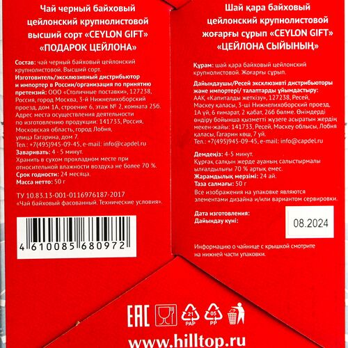 Состав: Чай чёрный байховый цейлонский крупнолистовой.