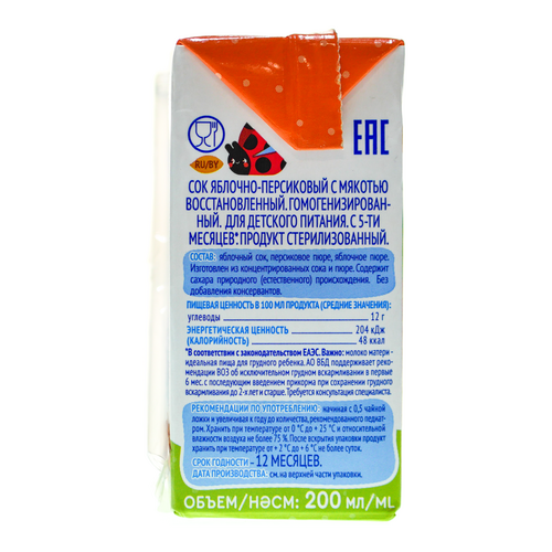 Состав: Яблочный сок, персиковое пюре, яблочное пюре.