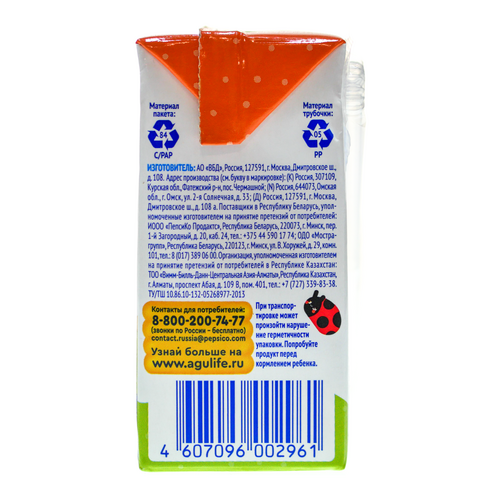 Сок Агуша Яблоко-персик с мякотью 200мл изготовлен из концентрированного яблочного сока, персикового и яблочного пюре без добавления сахара, консервантов и красителей. Как и вся продукция бренда, проходит 72 проверки качества - от сбора урожая до доставки в магазины. Рекомендуется давать детям с 5-месячного возраста, начиная с 0,5 чайной ложки в день, постепенно увеличивая к 12 месяцам до 100 грамм.