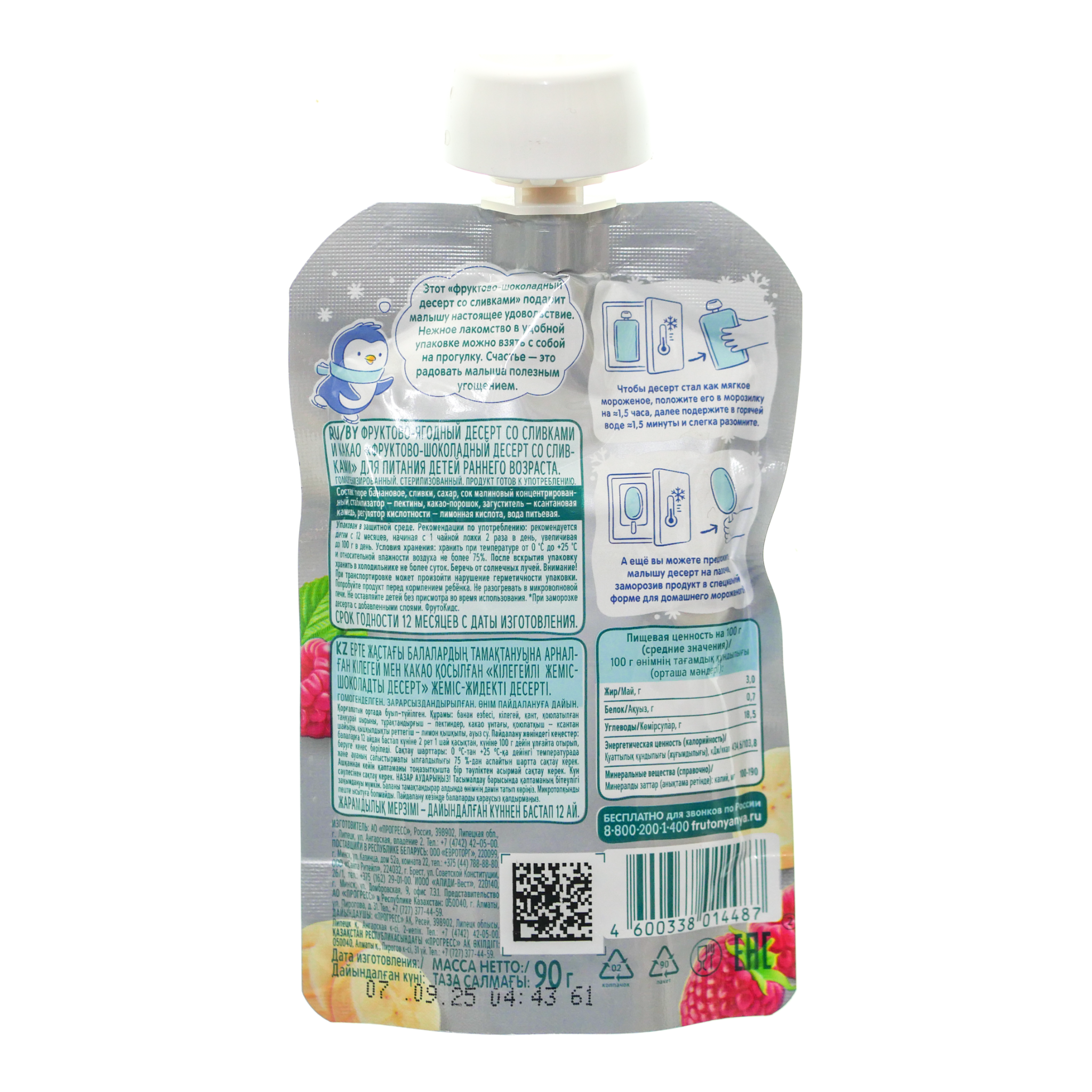 Десерт ФрутоКидс 90г фрукты/ягоды/сливки/какао Прогресс