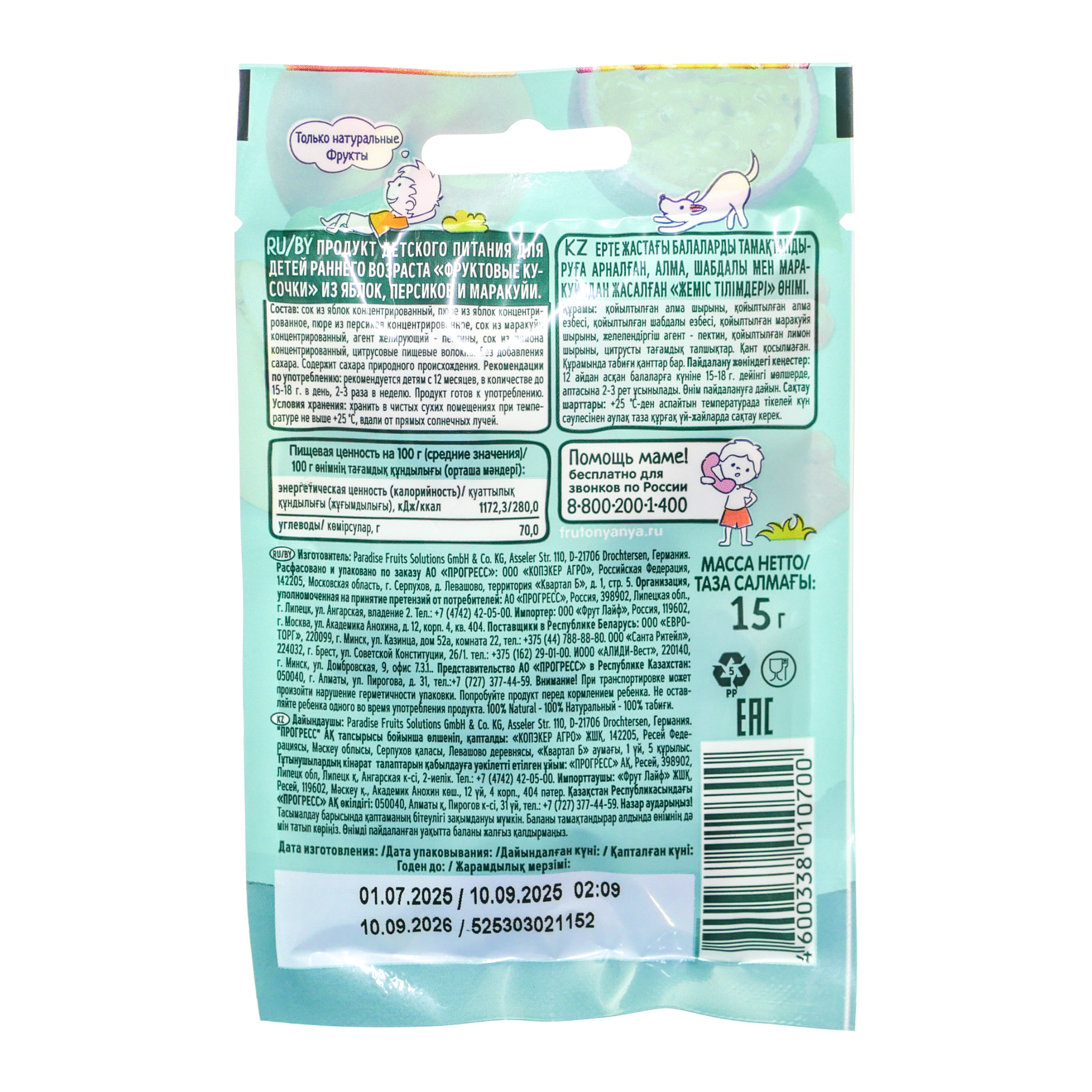 Фруктовые кусочки ФрутоНяня 15г яблоко/персик/маракуйя Прогресс