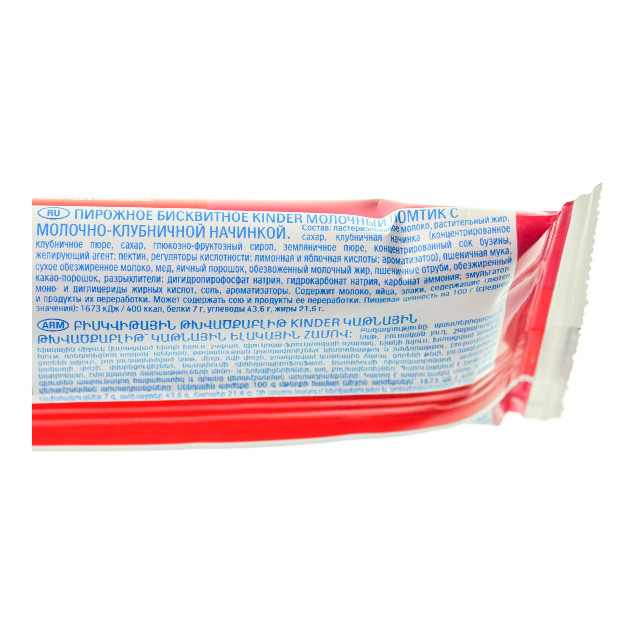 Пироженое Киндер молочный ломтик 28г клубника Данон БЗМЖ