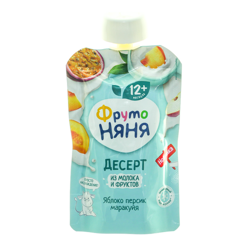 Молочный десерт из яблок, персиков и маракуйи «ФрутоНяня» – это вкусное и полезное угощение с тропическими нотками для детей от 12 месяцев. Продукт приготовлен из 100% натуральных фруктовых пюре и соков. Состав дополнительно обогащен витамином С для укрепления иммунитета. Разве нужен повод, чтобы побаловать малыша вкусным и полезным лакомством? Мягкую упаковку 90г удобно брать с собой, чтобы ребенок в любое время мог зарядиться дополнительной энергией и насладиться тропическим фруктовым вкусом!