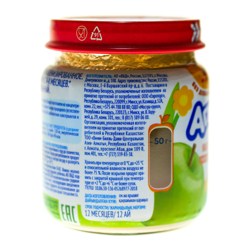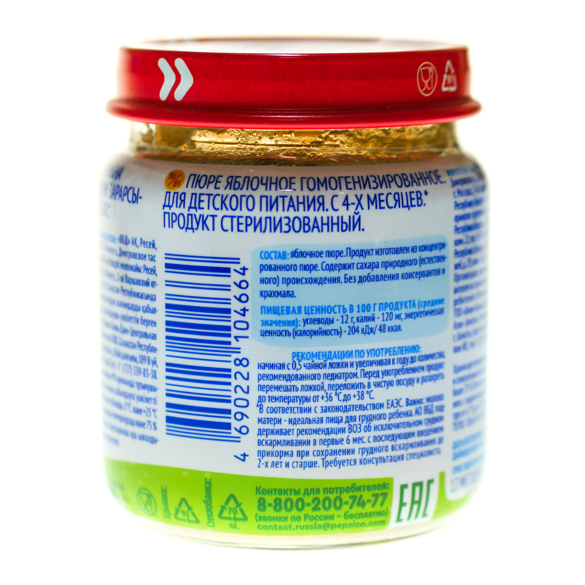 Фруктовое пюре Агуша из яблок. Гомогенизированное. Создано для детей от 4 месяцев.