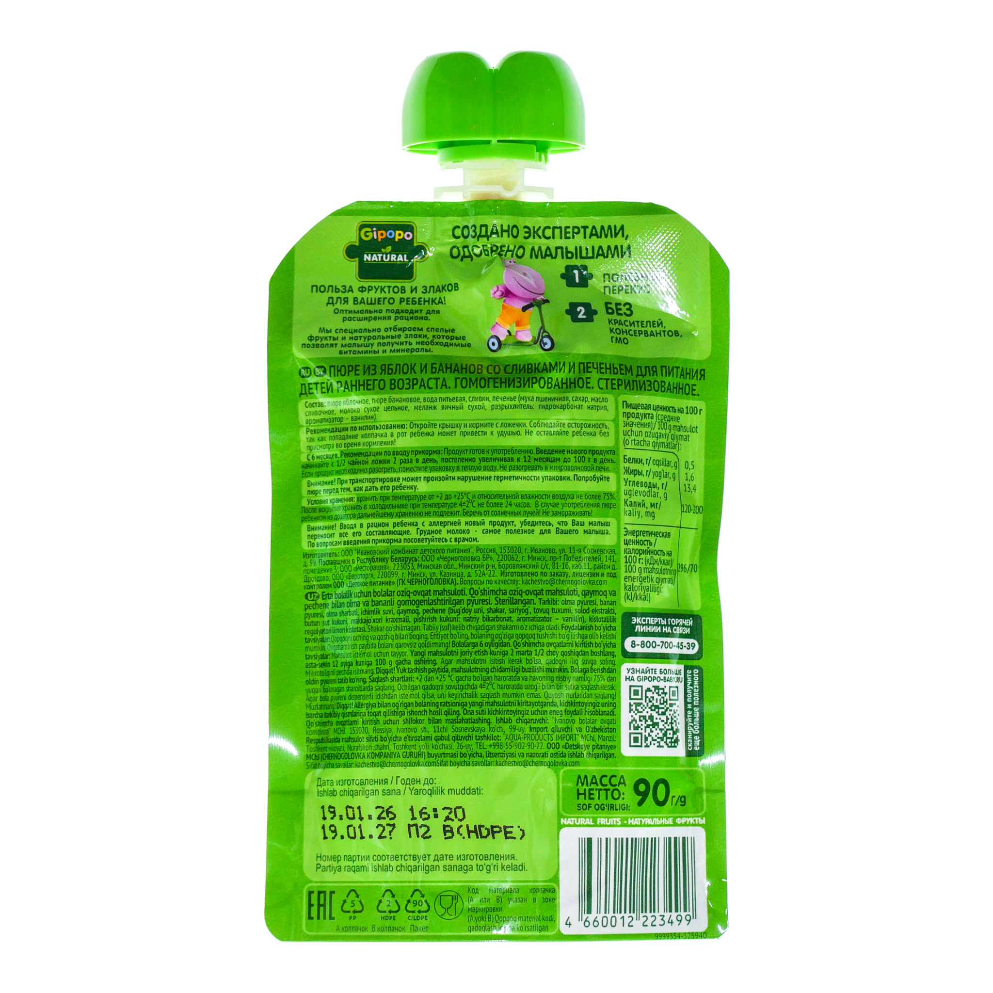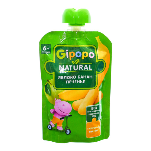 Пюре Gipopo фруктовое яблоко банан сливки печенье 90г пауч