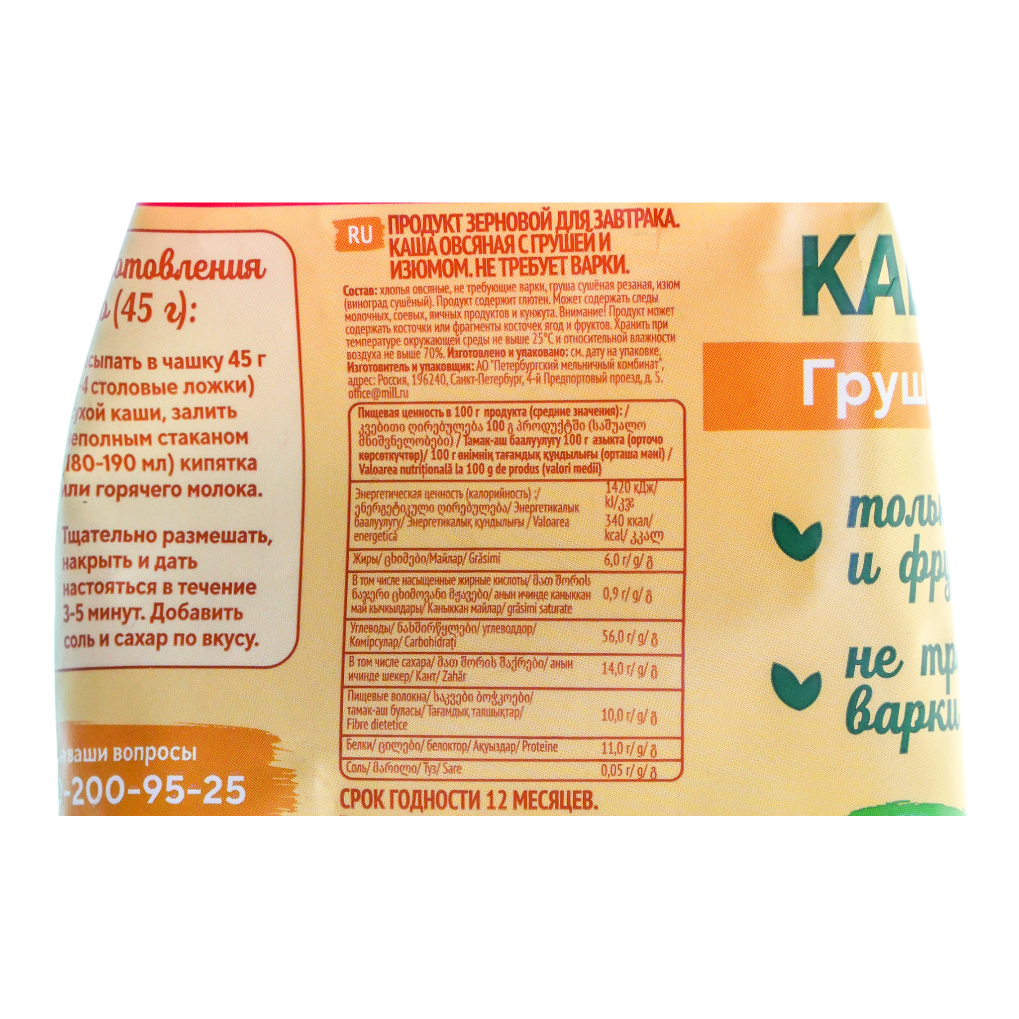 Каша Ясно солнышко 300г овсян/груша/изюм без сах