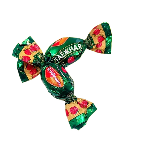 Карамель "Таежная" с малиной. Карамель выполнена в виде шишки. Начинка из натурального пюре малины. Не оставит равнодушными детей и взрослых легкая кислинка малины и сладкая карамель это сочетание освежит в жару и подарит незабываемые воспоминания о лете.