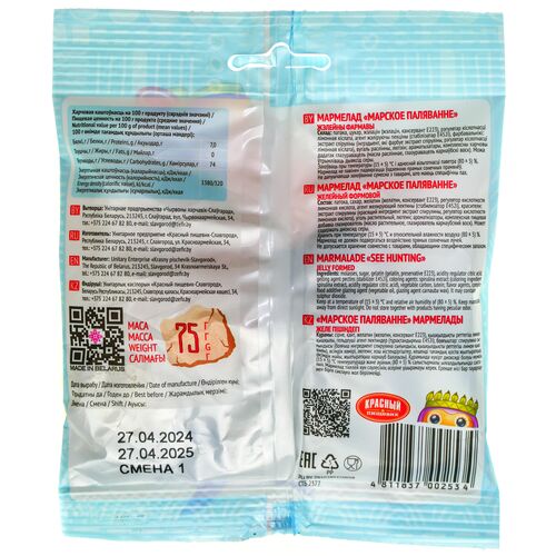 Мармелад Tinki "Морское плавание" - это жевательный мармелад обладающий насыщенным вкусом манго и апельсина, клубники и банана, яблока и груши, персика и маракуйи. Мармелад Tinki имеет уникальную форму в виде морских обитателей и яркий дизайн. Tinki "Морское плавание" обладают приятным ароматом, мягкой эластичная текстурой, легко жуются и подходят для украшения мороженного и десертов. Мармелад Tinki - это удобный перекус, не содержит жир. Без ГМО. Произведено в республике Беларусь и содержит только натуральные красители. Может содержать диоксид серы.
