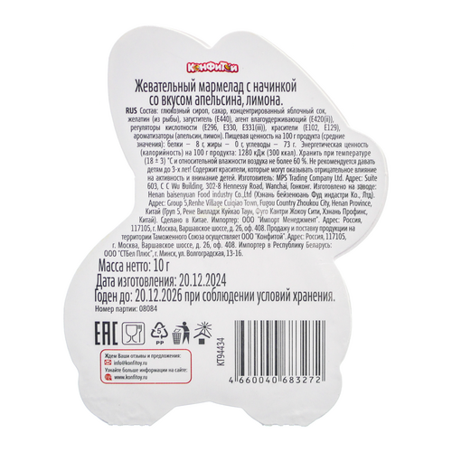 Жевательный мармелад 10г Гамми Фрут Корги/лимонный джем