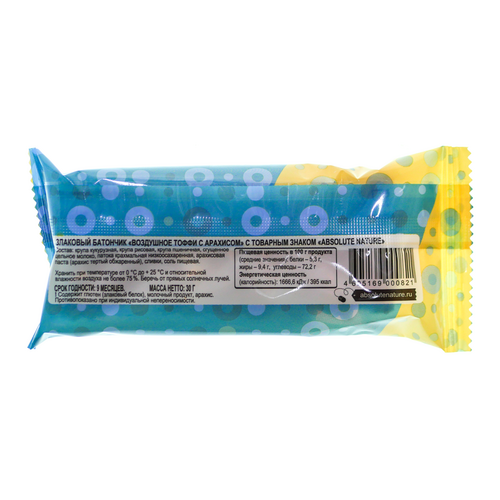 Батончик злаковый 30гр воздушное тоффи/арахис