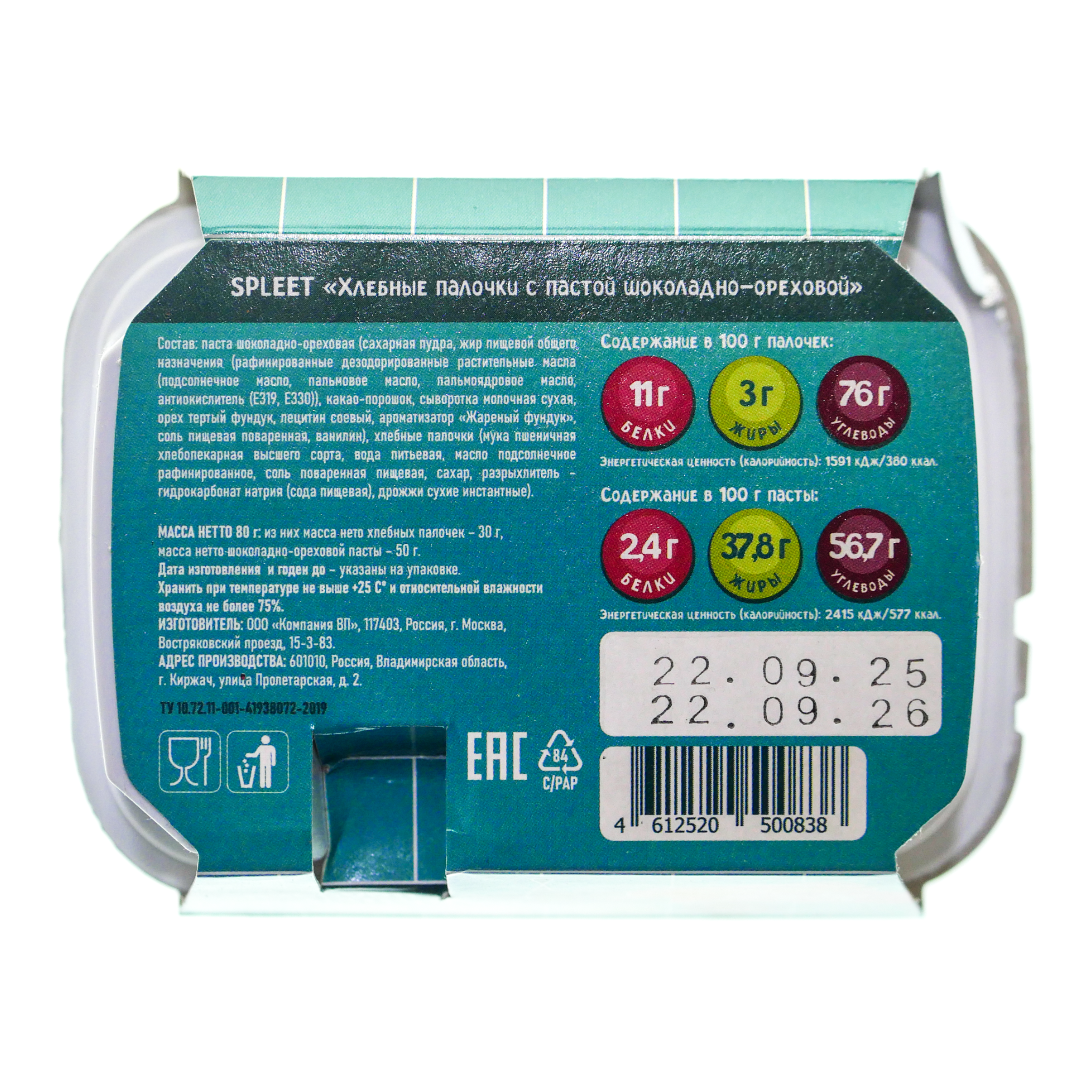 Паста шок Сплит 80г ореховая с хлебными палочками