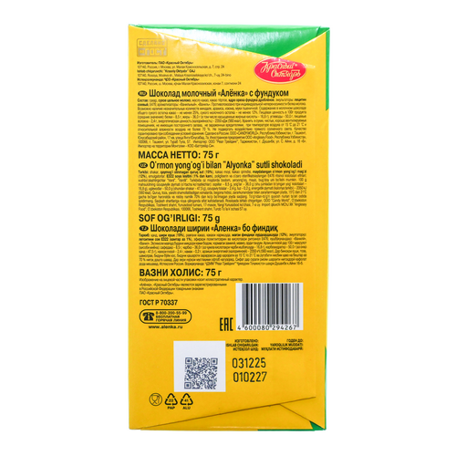 Шоколад Аленка 75г фундук ОК