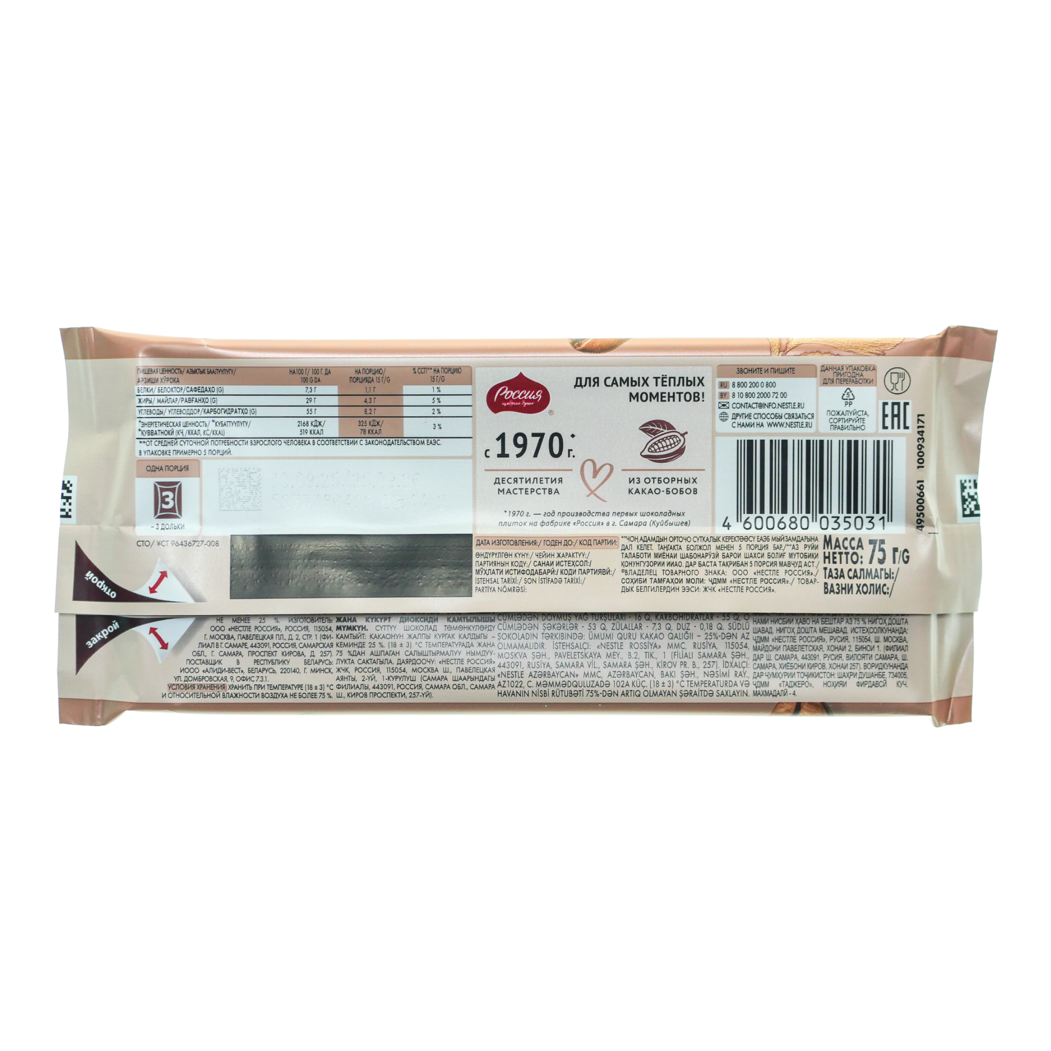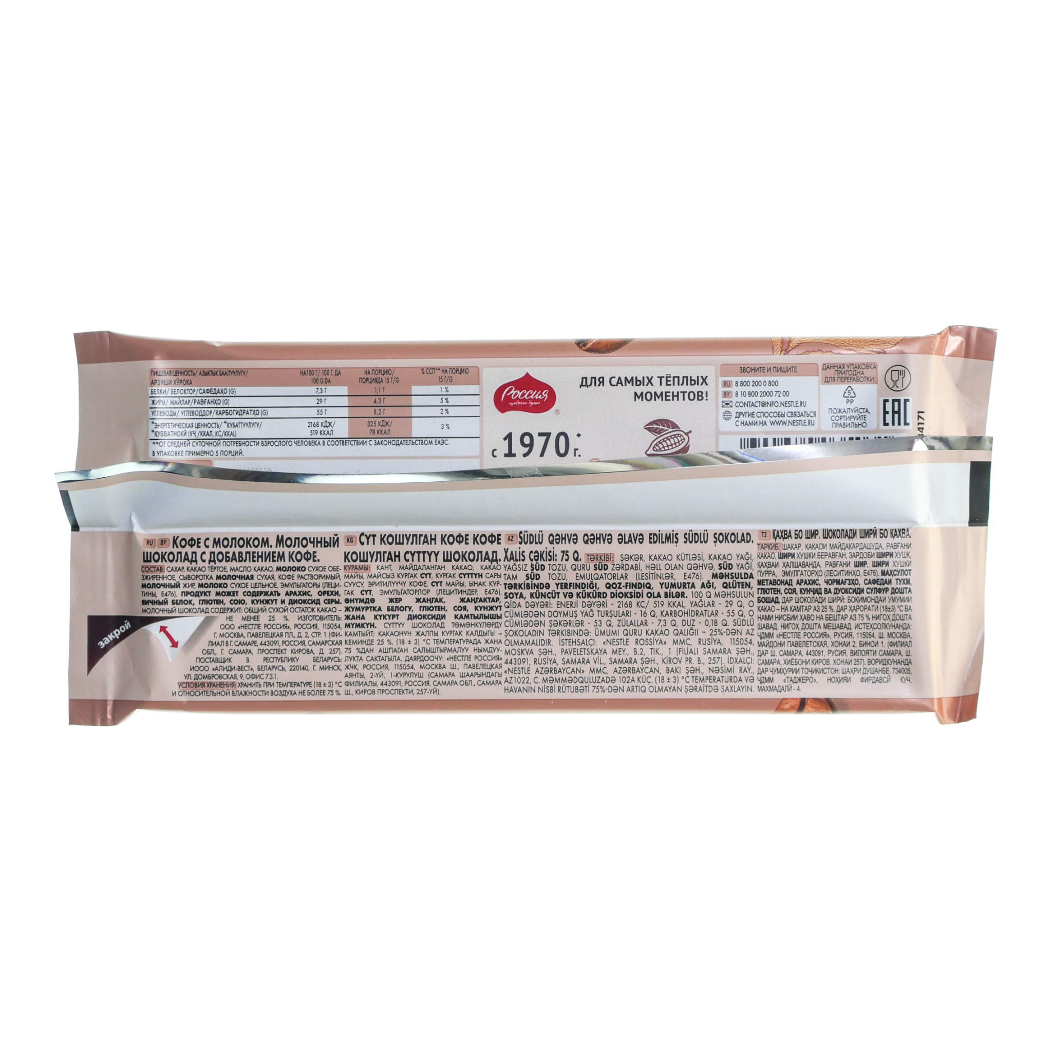 Шоколад Россия 75г кофе с молоком Нестле