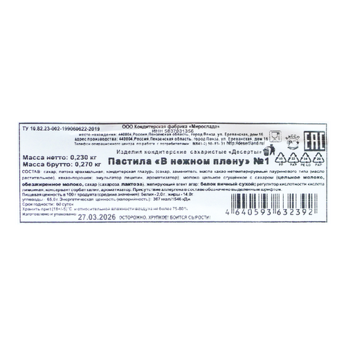 Пастила В нежном плену №1 230г Мирослада