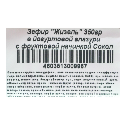 Зефир Жизель 350г йогуртов глазурь/фруктов нач Сокол