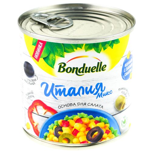 Любите ли вы салаты так, как любим их мы? Уверены, что да. Поэтому Bonduelle представляет овощную смесь с кукурузой Италия Микс для салатов. Она легкая и игривая, абсолютно с итальянским характером. Чтобы почувствовать вкус Средиземноморья, теперь достаточно просто открыть банку. Можете добавить свежие овощи - и идеальный салат готов к подаче.